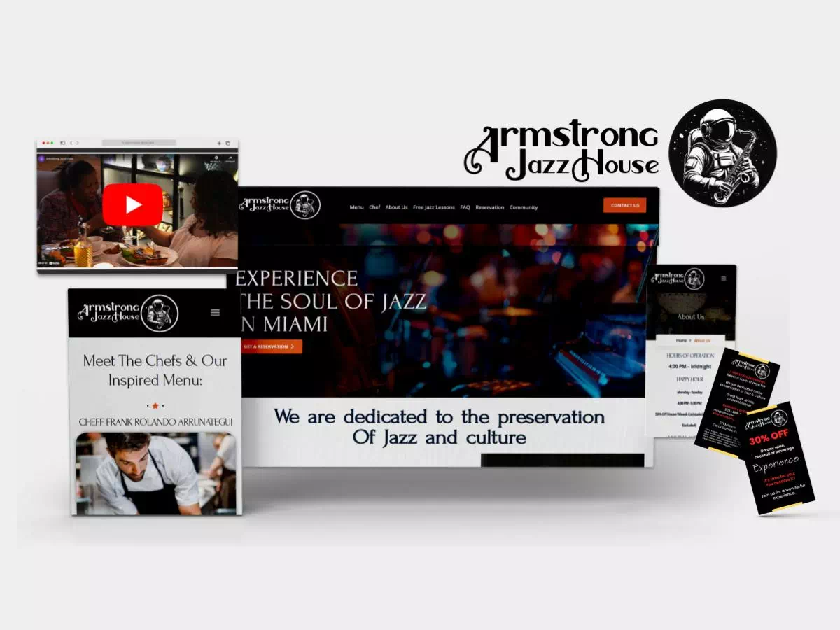 Armstrong Jazz House is a vibrant cultural venue dedicated to preserving and promoting the legacy of jazz in the heart of Miami. We designed a dynamic, visually rich website that celebrates its mission, featuring immersive visuals, event highlights, and an intuitive layout that invites visitors to explore performances, history, and community engagement.