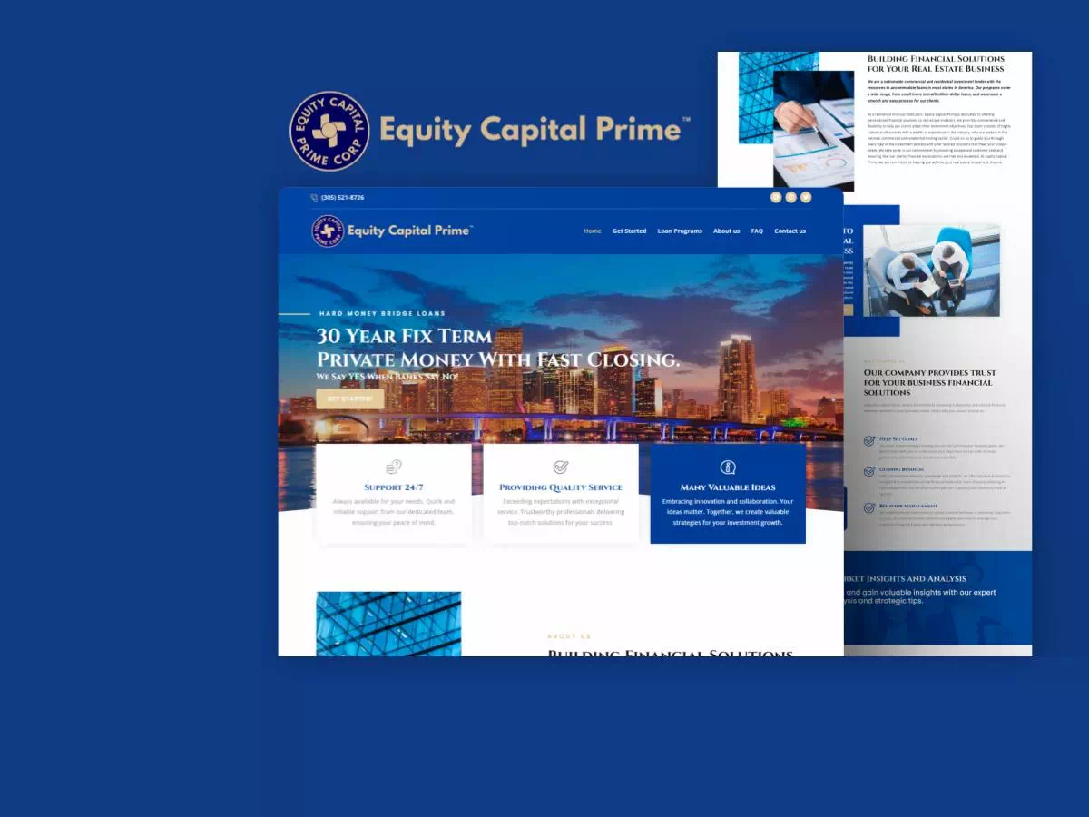 Despite Equity Capital Prime’s financial expertise and diverse loan offerings, their digital presence failed to convey their professional standing and comprehensive services: