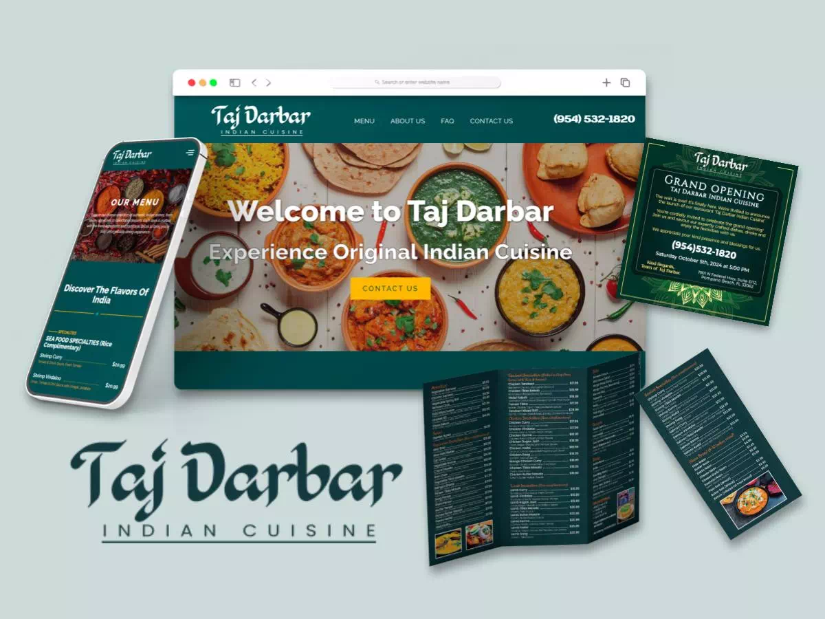 Taj Darbar is a premium Indian restaurant offering an elevated dining experience rooted in authentic South Asian cuisine. From aromatic biryanis to rich curries, their menu blends tradition with elegance. We crafted a visually rich and responsive website that showcases their dishes, atmosphere, and services—complete with online reservations and delivery integration to enhance customer convenience.